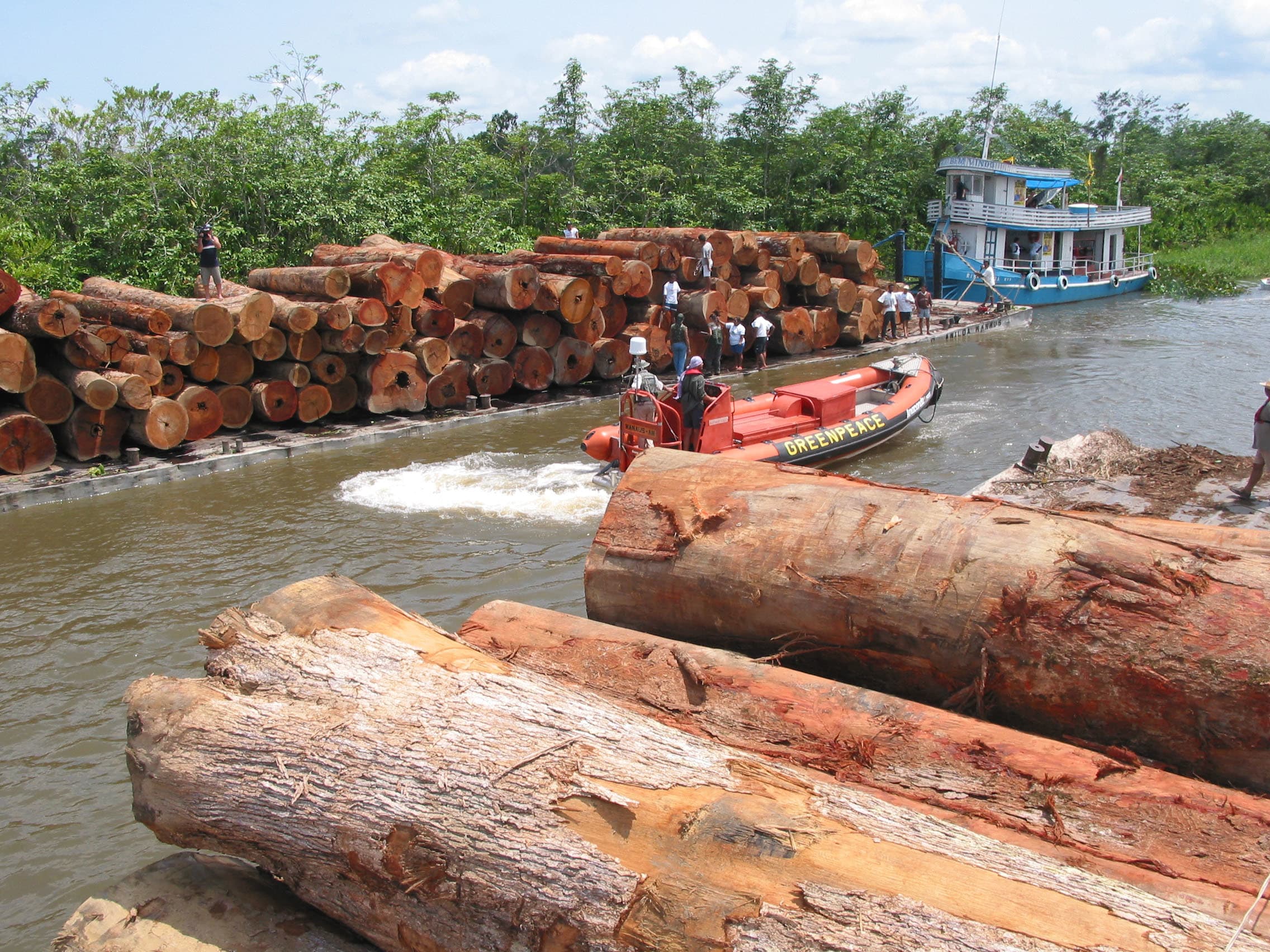 Também em 2002, o Greenpeace Brasil se juntou às comunidades locais em bloqueio fluvial de três dias feito por 40 pequenas embarcações no rio Jaraucu, no Pará, com o objetivo de paralisar duas balsas transportando mais de 200 toras de madeira ilegal. O carregamento foi apreendido pelo Ibama (Instituto Brasileiro do Meio Ambiente e dos Recursos Naturais Renováveis).