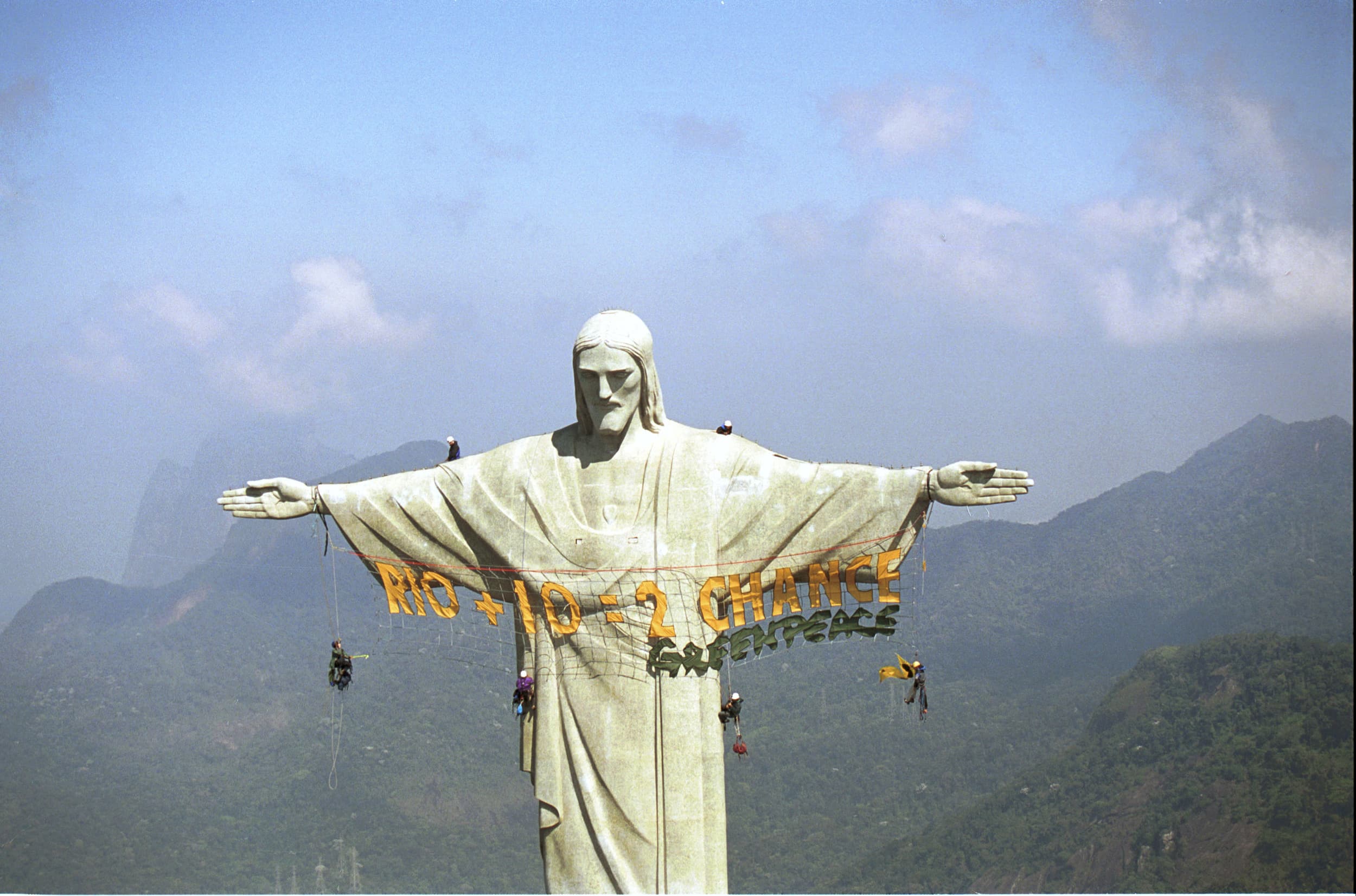 Na Rio+10, em 2002, em razão da Cúpula Mundial sobre o Desenvolvimento Sustentável, o Greenpeace Brasil ocupou o Corcovado para ressaltar que os líderes globais deveriam escolher o caminho do equilíbrio sustentável e da defesa da natureza.