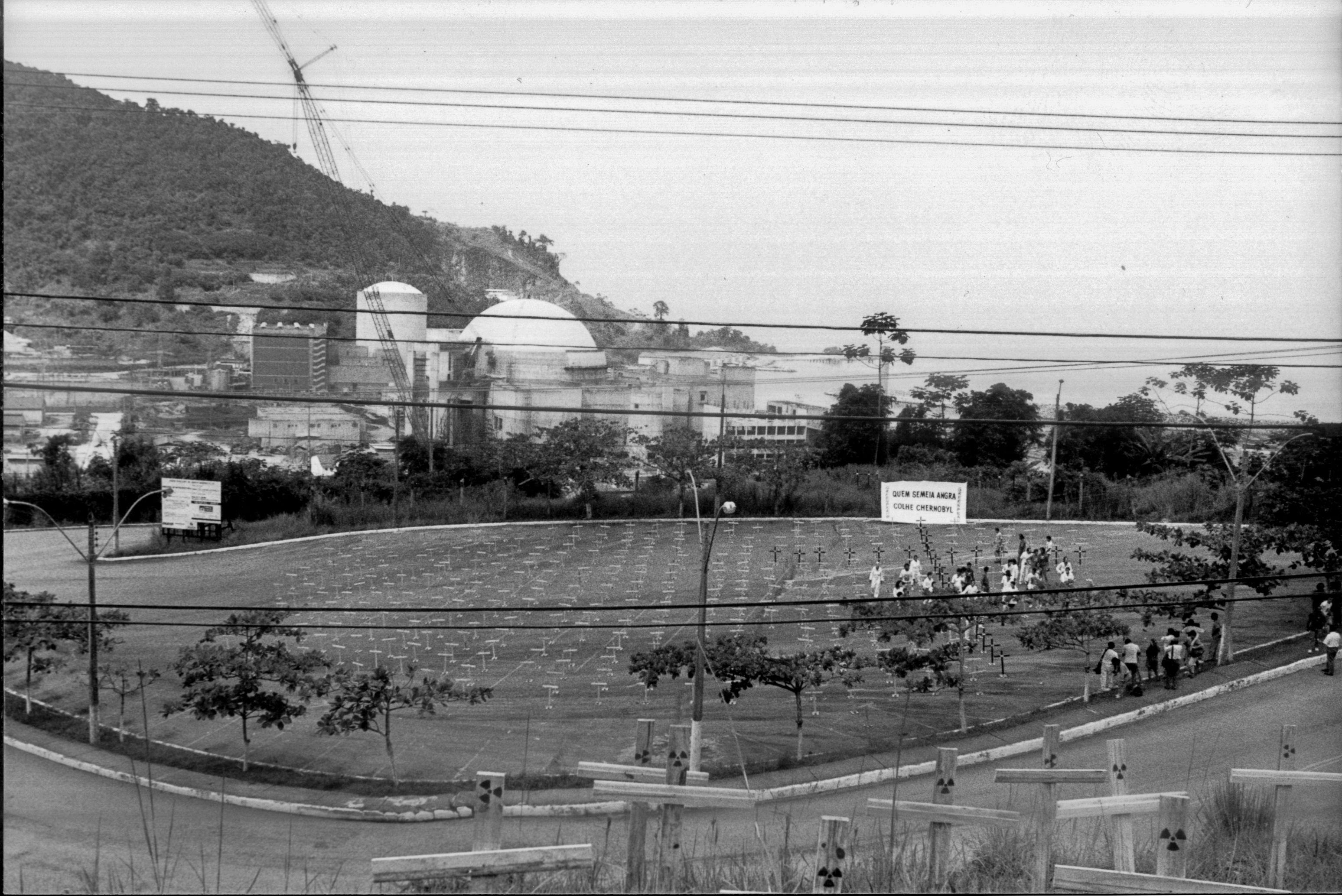Em 26 de abril de 1992, um grupo de ativistas realizou um protesto pacífico contra a construção da Usina Nuclear de Angra dos Reis (RJ) e oficializou o surgimento do Greenpeace no Brasil. Foram utilizadas centenas de cruzes em homenagem às vítimas de Chernobyl.