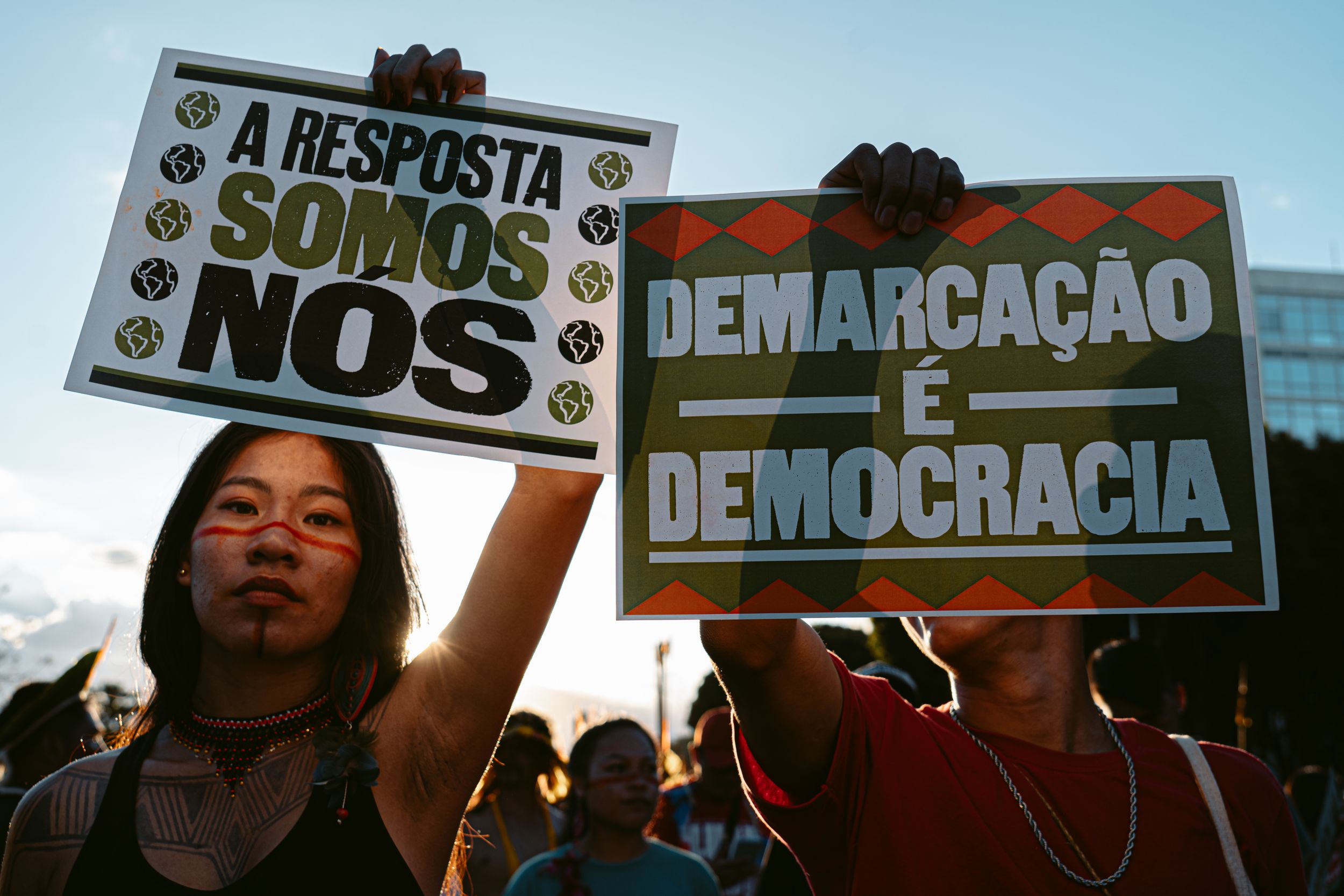 Em 2023, o Greenpeace Brasil mobilizou mais de meio milhão de pessoas contra o Marco Temporal, tese que restringe os direitos indígenas às terras ocupadas até 1988.